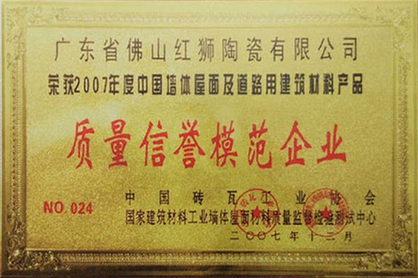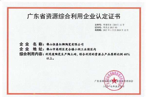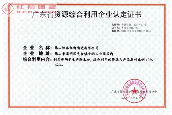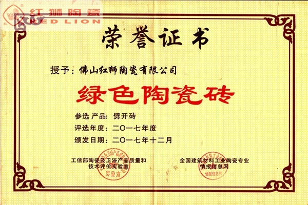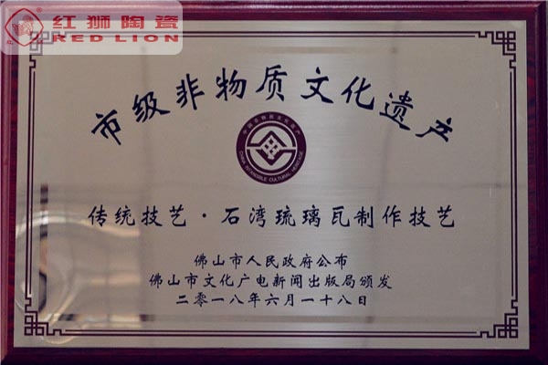 我司是廣東省內唯一擁有“非物質文化傳承”技藝的建材陶企,曾連續14年被評為廣東省重合同守信用企業;1999年起持續通過ISO質量管理體系認證、ISO環境管理體系認證、OHSAS職業健康安全管理體系認證;2002年成立了經佛山市科學技術局、佛山市發展計劃局、佛山市經濟貿易局認證的佛山市工程技術研究開發中心;2003年“紅獅”牌獲選廣東省著名商標;2005年被佛山市知識產權局授予佛山市知識產權示范企業;2008年被廣東省建筑材料行業協會評為廣東省建材質量信用企業、廣東省建材行業節能減排優秀企業、改革開放30年廣東省建材行業突出貢獻企業;2009年被廣東省科學技術廳評為廣東省民營科技企業、高新技術企業;2009-2018年被評為廣東省清潔生產企業;2017年被廣東省循環經濟和資源綜合利用協會認定為廣東省資源綜合利用企業;2017年作為石灣琉璃瓦制作技藝傳承保護單位列入佛山市非物質文化遺產項目名錄;2017及2018年被授予廣東省名牌產品。